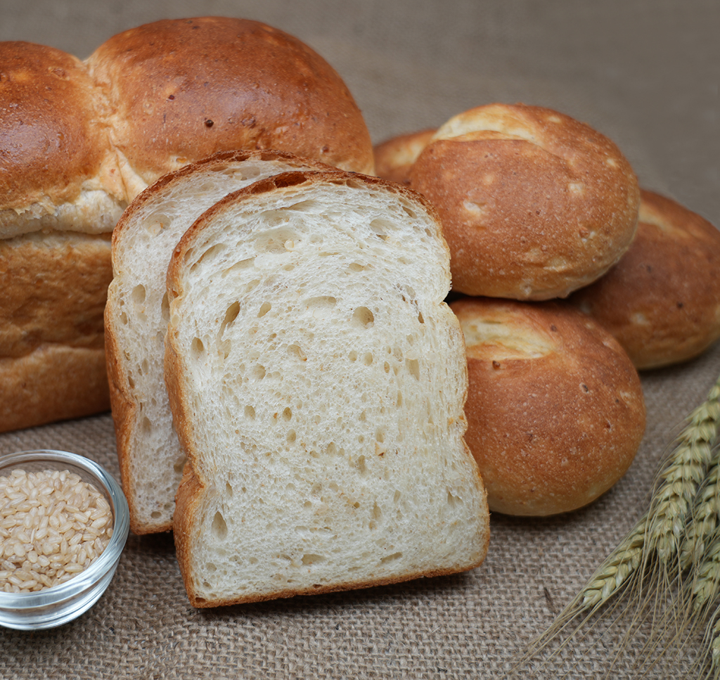 発酵種で漬け込んだ玄米を練り込んだしっとり食感のパンです。食物繊維が豊富なブランも配合しました。